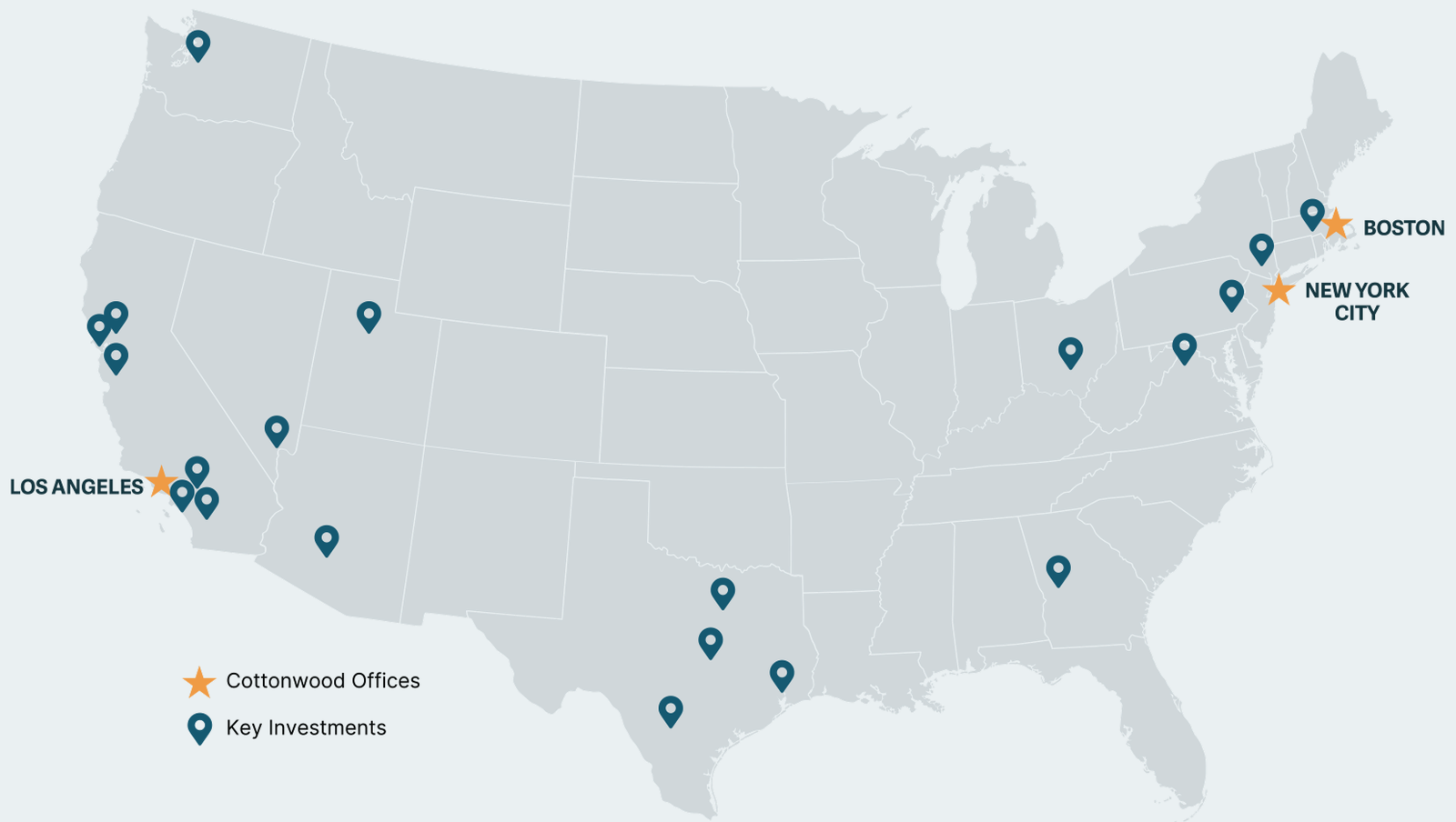 Cottonwood is a U.S.-based real estate private equity firm with a proven track record, time-tested throughout market cycles. Since our founding in 2012, our opportunistic investment platform has invested across the capital stack to generate attractive risk-adjusted returns.